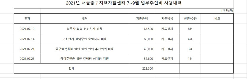 2021년 서울중구지역자활센터 7월~9월 업무추진비 사용내역 페이지 정보 작성자 서울중구지역자활센터 댓글 0건 조회 4,509회 작성일 21-12-16 18:34 목록 본문 이전글2021년 서울중구지역자활센터 10월~12월 업무추진비 사용내역 21.12.16 다음글2021년 서울중구지역자활센터 4~6월 업무추진비 사용내역 21.07.26 댓글 0 댓글목록 등록된 댓글이 없습니다.