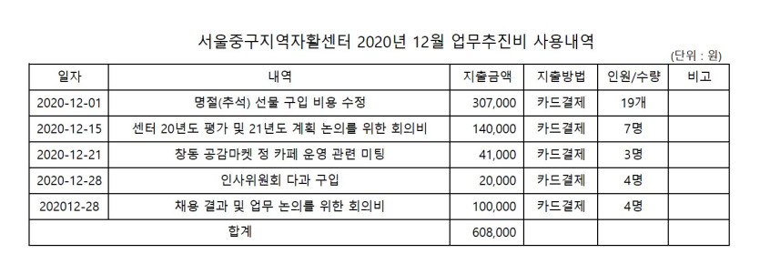 서울중구지역자활센터 2020년 12월 업무추진비 사용내역 페이지 정보 작성자 서울중구지역자활센터 댓글 0건 조회 4,518회 작성일 21-01-12 10:45 목록 본문 서울중구지역자활센터 2020년 12월 업무추진비 사용내역 이전글[합격자공고] 자활근로사업 자활전문가 합격자 공고 21.01.12 다음글서울중구지역자활센터 계약직 직원 채용 공고 21.01.11 댓글 0 댓글목록 등록된 댓글이 없습니다.